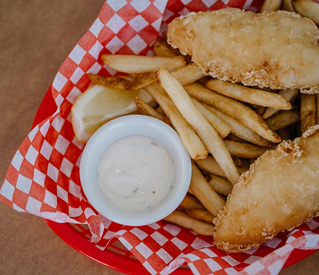 Choose between Fish & Chips or Chicken Fingers & Fries served between 5:00 p.m. and 8:00 p.m.